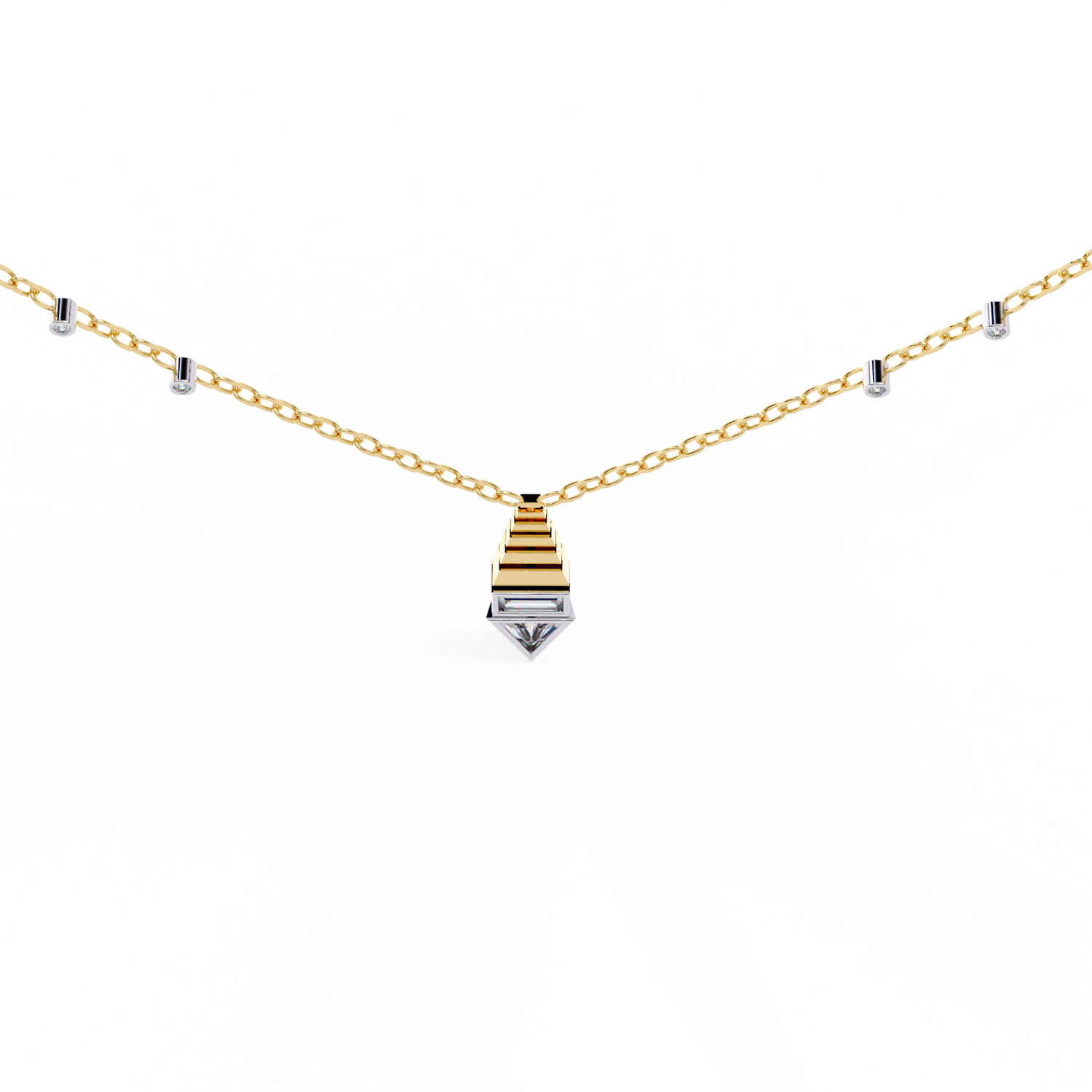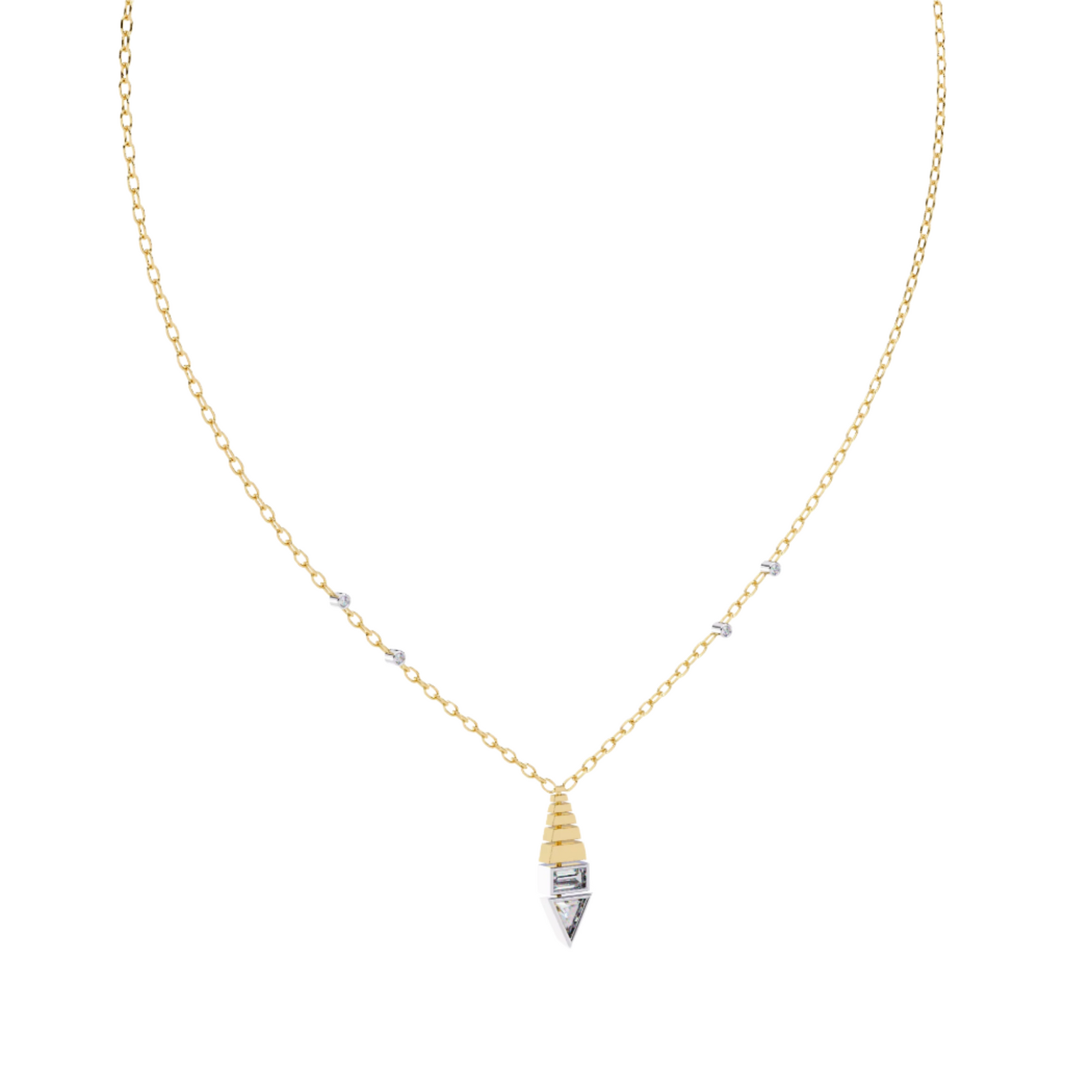 Lucinda Lightweight Pendant brings a touch of luxury to your everyday attire, infusing it with creative elegance. Crafted with gold and diamonds, it's an ideal accessory for any occasion.